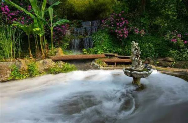 山泉從山上自然流進園子,