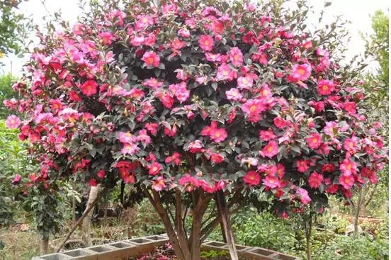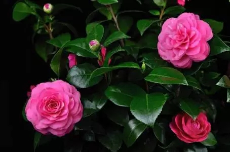 茶梅葉革質(zhì),橢圓形,上面發(fā)亮,下面褐綠色,網(wǎng)脈不顯著;邊緣有細(xì)鋸齒,葉柄稍被殘毛。花大小不一,苞片及萼片被柔毛;花瓣闊倒卵形,雄蕊離生,子房被茸毛,蒴果球形,種子褐色,無(wú)毛。