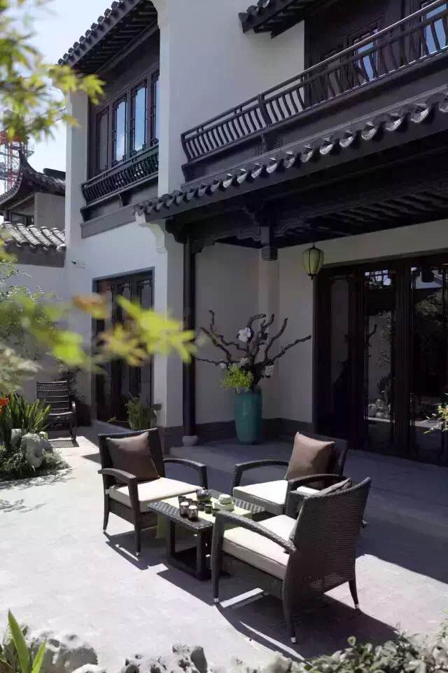 意象中式:一些風格清新的項目也受到客戶的歡迎,如杭州桂語里。白描手法寫意江南民居風格,木窗灰磚呼應自在墅居。