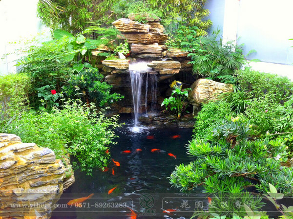較為現代的小池子,種幾棵浮萍,樣幾條金魚,在利用小噴泉把整個池水靈動了起來。
